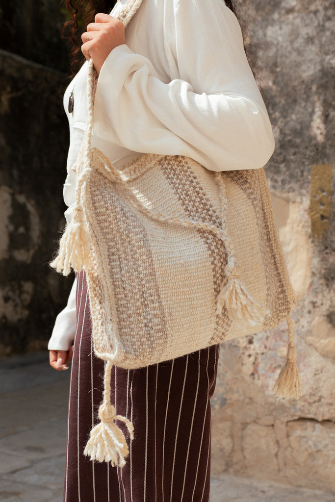 Master weavers, the women learned to shear, spin, dye, and weave wool from their mothers and spend their time passing on the knowledge to the new generation of women in the village. Aside from the spinning and dyeing process, it takes Um Salem about ten days to weave one bag.